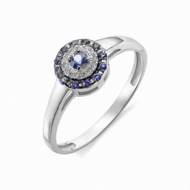 Кольцо из белого золота с бриллиантами и сапфирами (039525)
