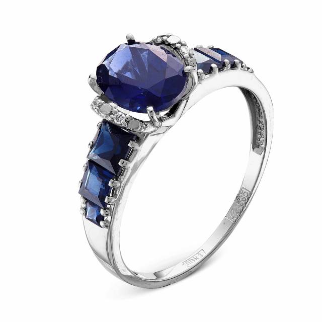 Кольцо из белого золота с бриллиантами и сапфирами (049998)