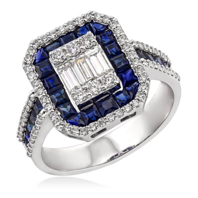 Кольцо из белого золота с бриллиантами и сапфирами (052304)
