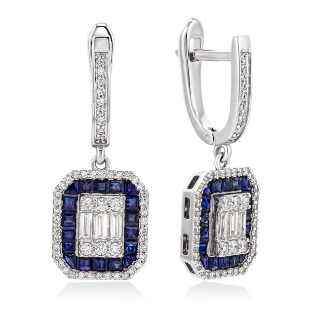 Серьги из белого золота с бриллиантами и сапфирами (052303)