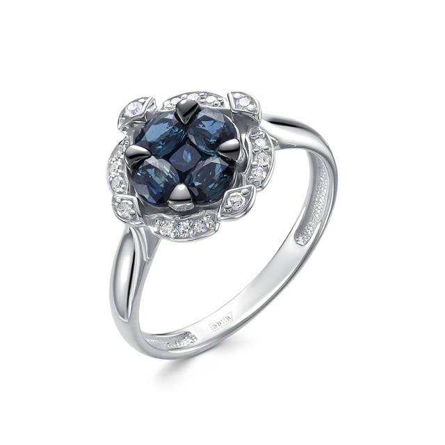 Кольцо из белого золота с бриллиантами и сапфирами (055278)