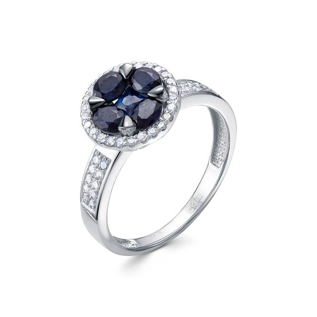 Кольцо из белого золота с бриллиантами и сапфирами (055282)