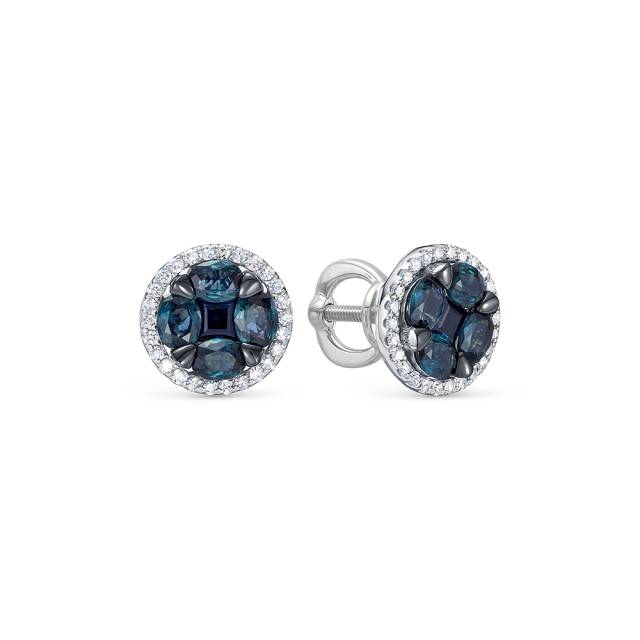 Серьги пусеты из белого золота с бриллиантами и сапфирами (055286)