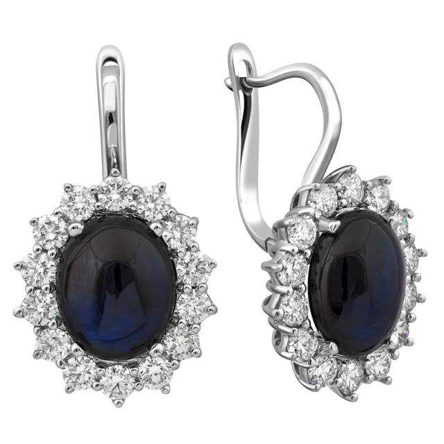 Серьги из белого золота с бриллиантами и сапфирами (013742)