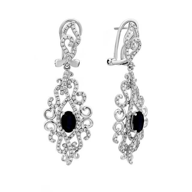Серьги из белого золота с бриллиантами и сапфирами (025936)