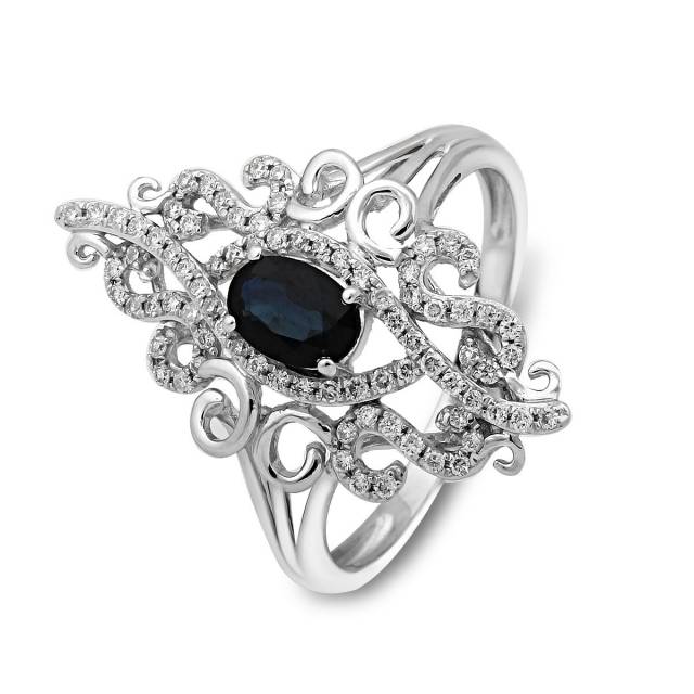 Кольцо из белого золота с бриллиантами и сапфиром (025935)