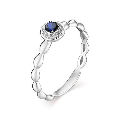 Кольцо из белого золота с бриллиантами и сапфиром (046243)