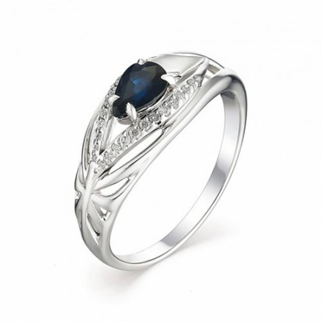 Кольцо из белого золота с бриллиантами и сапфиром (020279)