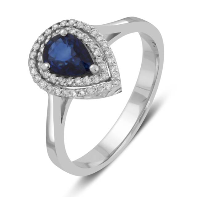 Кольцо из белого золота с бриллиантами и сапфиром (019876)