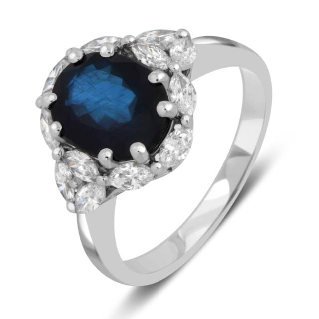 Кольцо из белого золота с бриллиантами и сапфиром (053551)