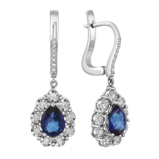 Серьги из белого золота с бриллиантами и сапфирами (039851)