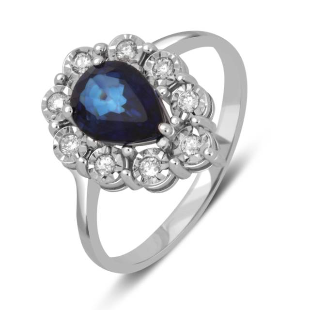 Кольцо из белого золота с бриллиантами и сапфиром (038163)