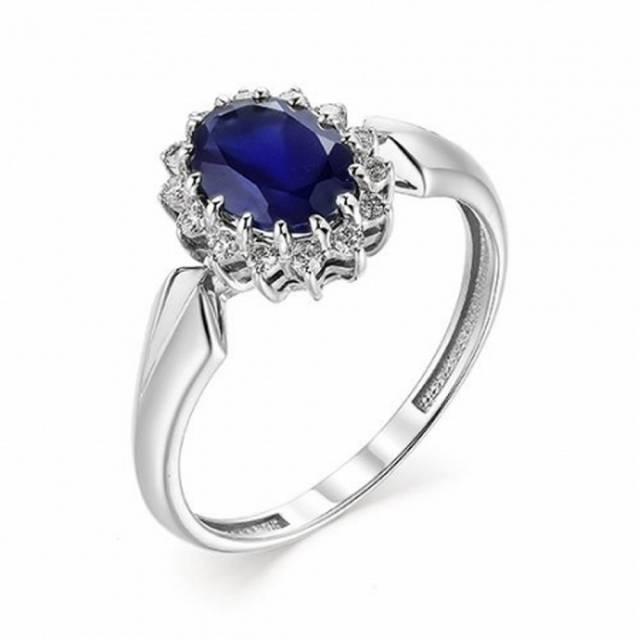 Кольцо из белого золота с бриллиантами и сапфиром (039498)