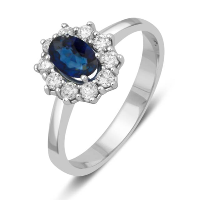 Кольцо из белого золота с бриллиантами и сапфиром (039787)
