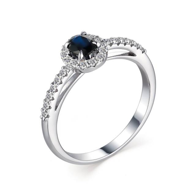 Кольцо из белого золота с бриллиантами и сапфиром (042026)