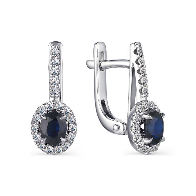 Серьги из белого золота с бриллиантами и сапфирами (042081)