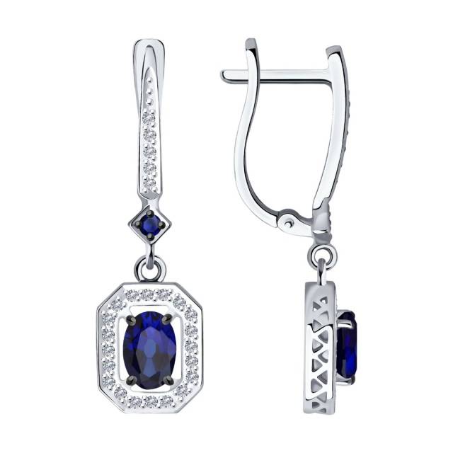 Серьги из белого золота с бриллиантами и сапфирами (043967)