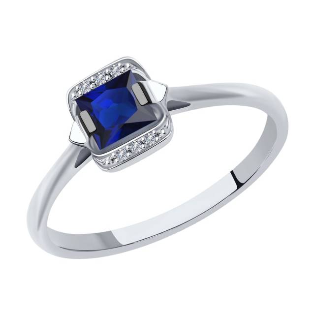 Кольцо из белого золота с бриллиантами и сапфиром (045243)