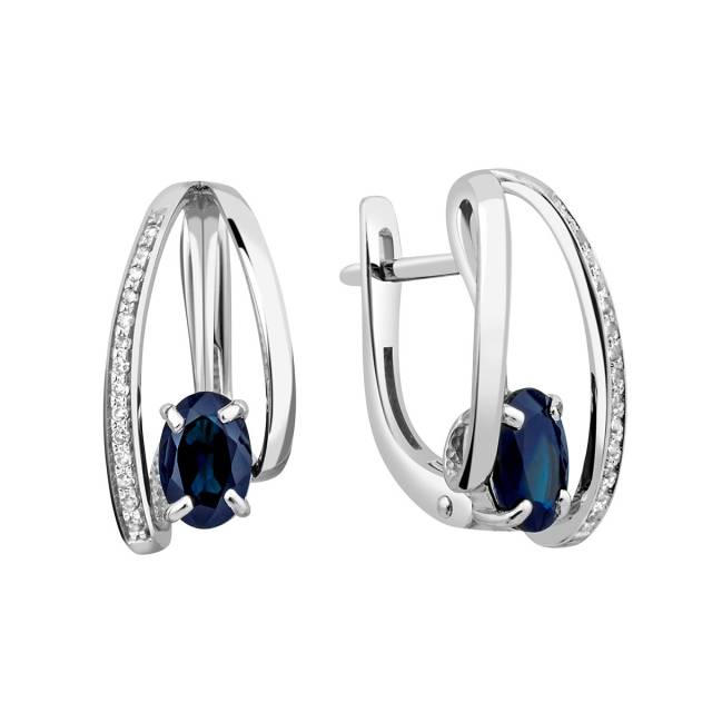 Серьги из белого золота с бриллиантами и сапфирами (024072)