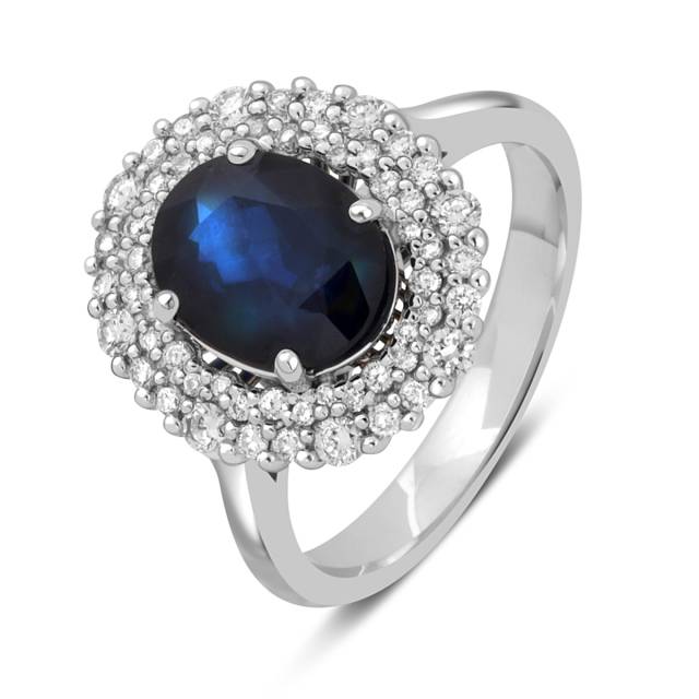 Кольцо из белого золота с бриллиантами и сапфиром (045595)