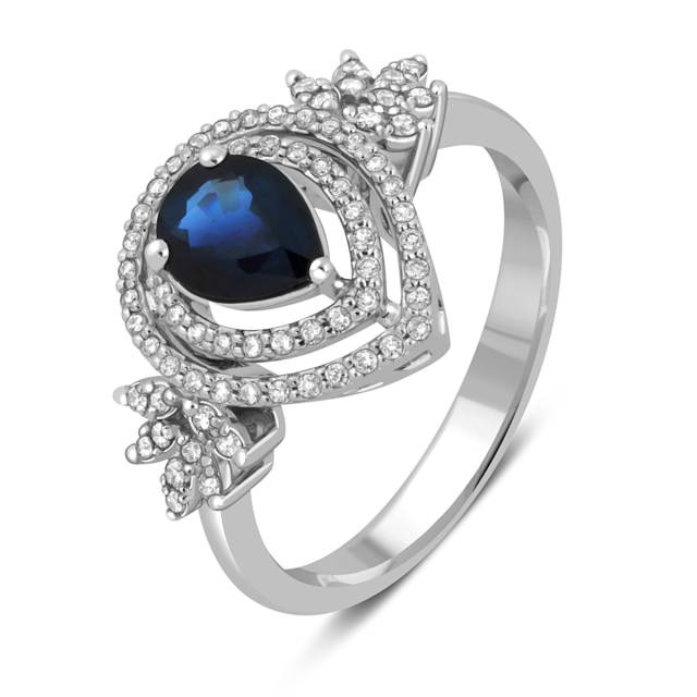 Кольцо из белого золота с бриллиантами и сапфиром (046113)