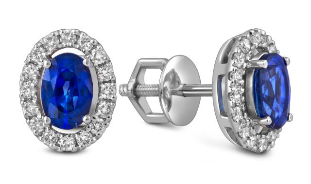Серьги пусеты из белого золота с бриллиантами и сапфирами (054501)