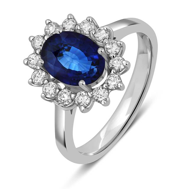 Кольцо из белого золота с бриллиантами и сапфиром (050785)