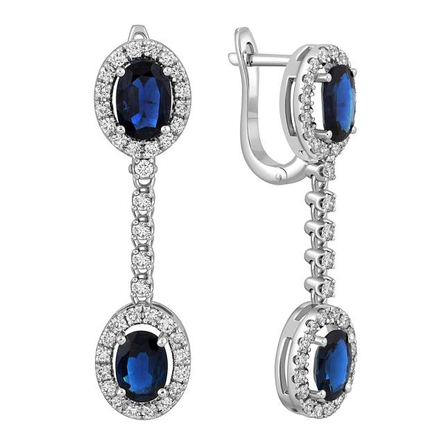 Кольцо из белого золота с бриллиантами и сапфиром (051337)