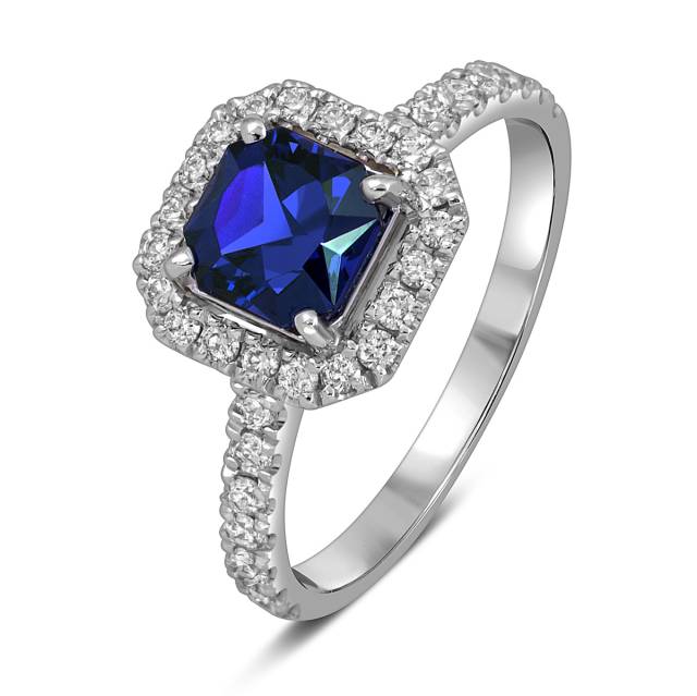 Кольцо из белого золота с бриллиантами и сапфиром (055132)