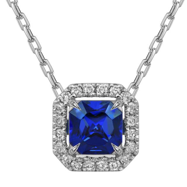 Колье из белого золота с бриллиантами и сапфиром (060171)