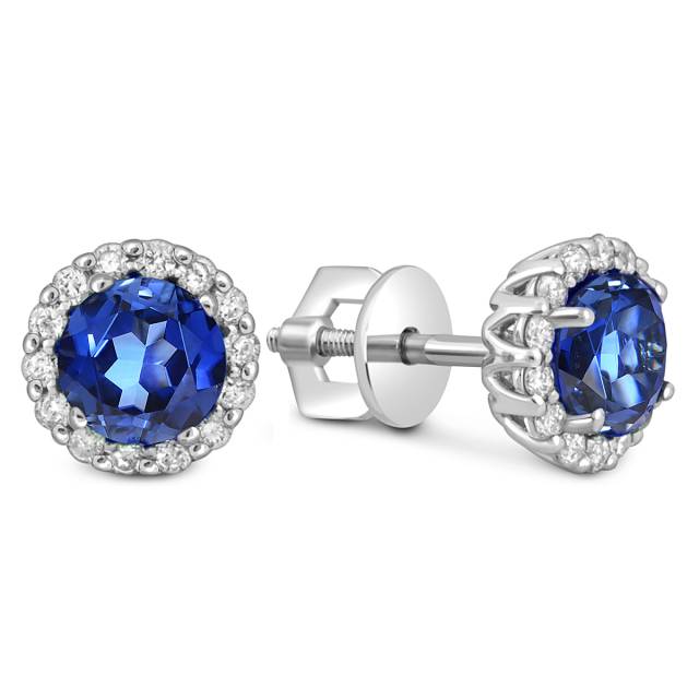 Серьги пусеты из белого золота с бриллиантами и сапфирами (051682)