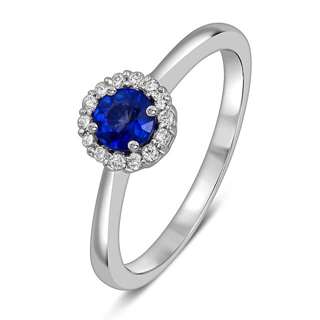 Кольцо из белого золота с бриллиантами и сапфиром (059205)