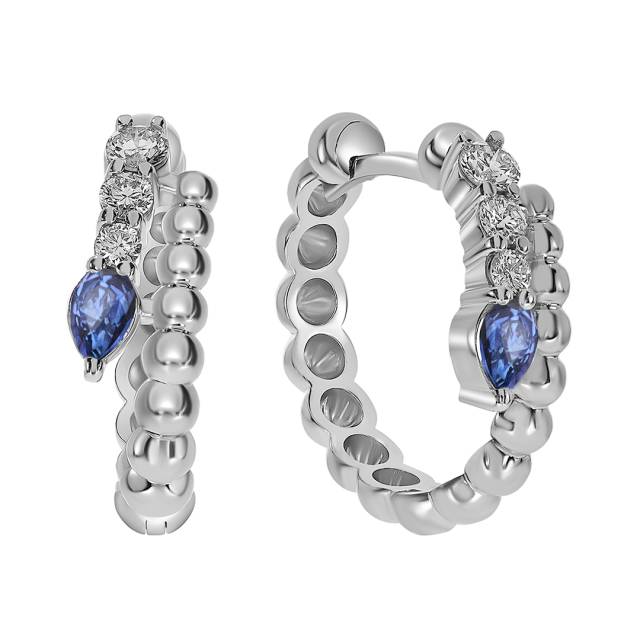Серьги конго из белого золота с бриллиантами и голубыми сапфирами (061121)