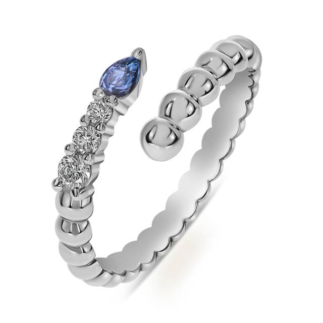 Кольцо из белого золота с бриллиантами и сапфиром (061133)