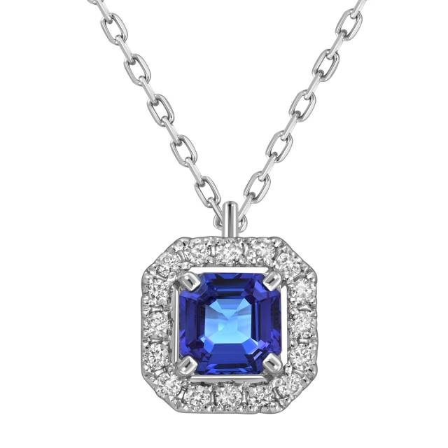 Колье из белого золота с бриллиантами и сапфиром (062781)