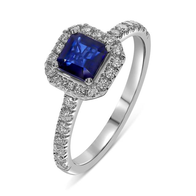 Кольцо из белого золота с бриллиантами и сапфиром (062663)