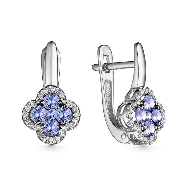 Серьги из белого золота с бриллиантами и танзанитами (055753)