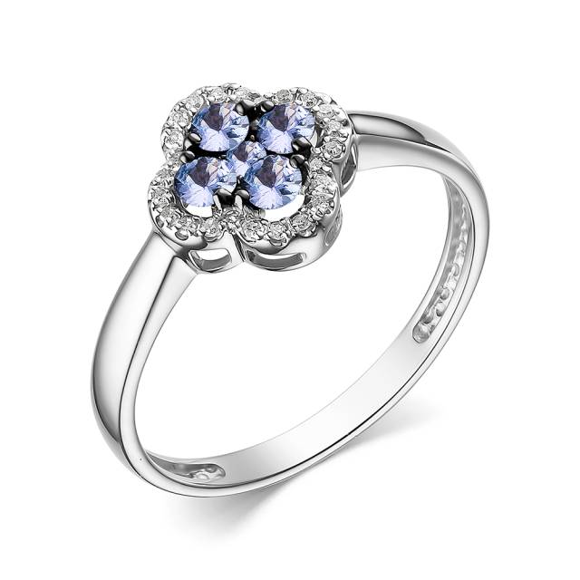 Кольцо из белого золота с бриллиантами и танзанитами (055791)