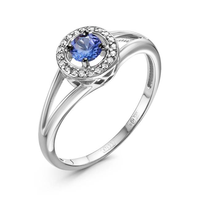 Кольцо из белого золота с бриллиантами и танзанитами (060468)