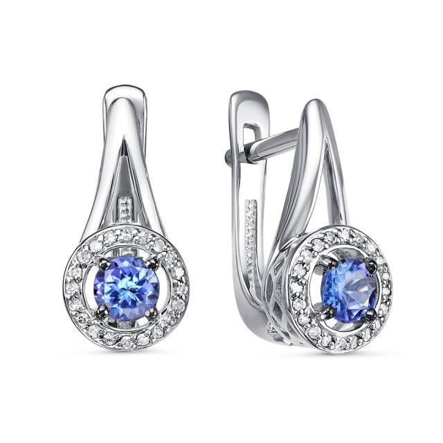 Серьги из белого золота с бриллиантами и танзанитами (060467)