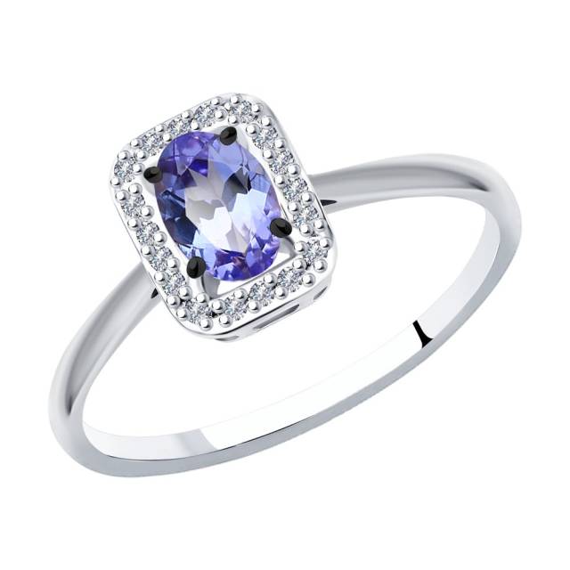 Кольцо из белого золота с бриллиантами и танзанитом (043969)