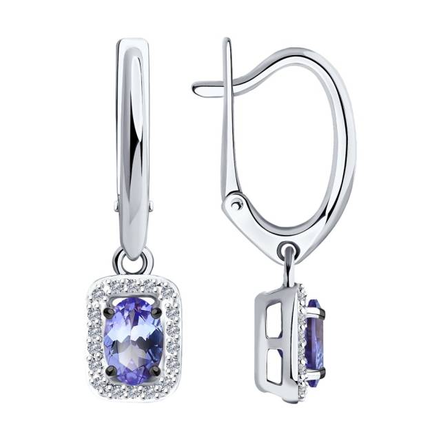 Серьги из белого золота с бриллиантами и танзанитами (043971)