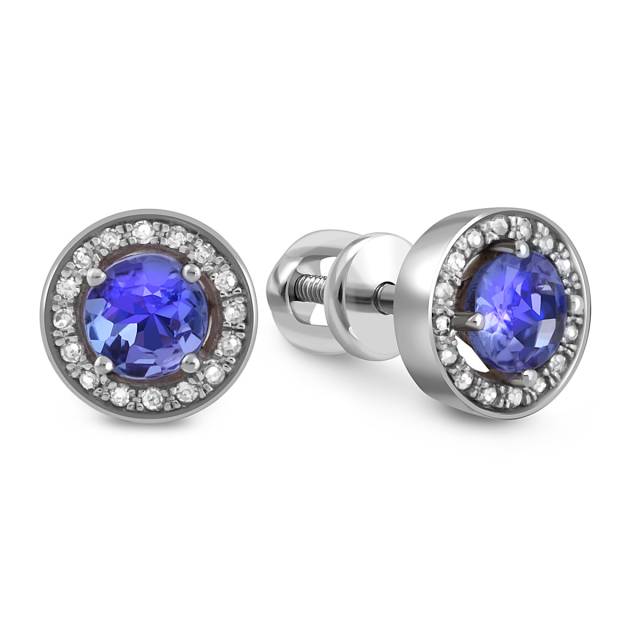 Серьги пусеты из белого золота с бриллиантами и танзанитами (045509)