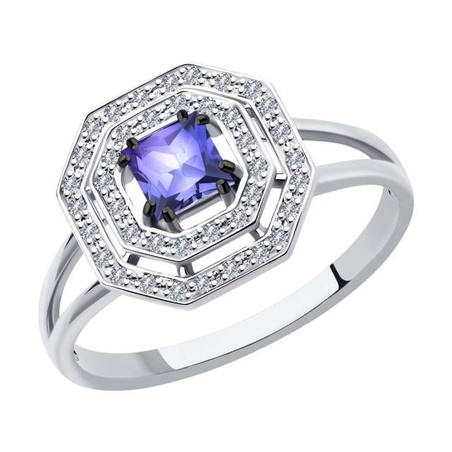 Кольцо из белого золота с бриллиантами и танзанитом (046283)