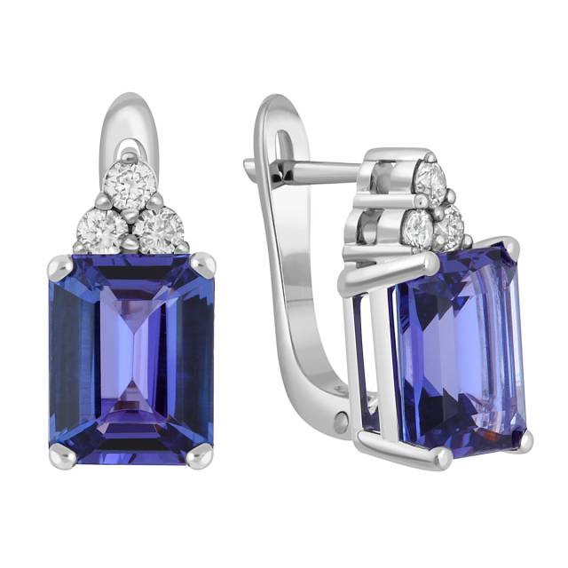 Серьги из белого золота с бриллиантами и танзанитами (047245)