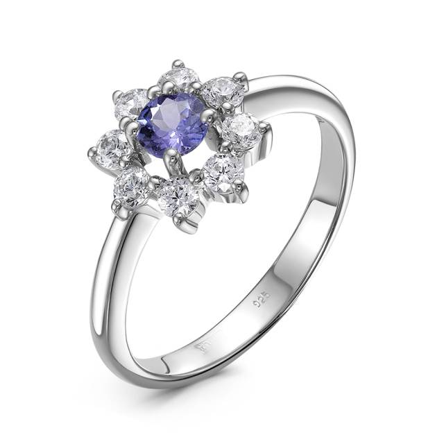 Кольцо из белого золота с бриллиантами и танзанитом (051088)