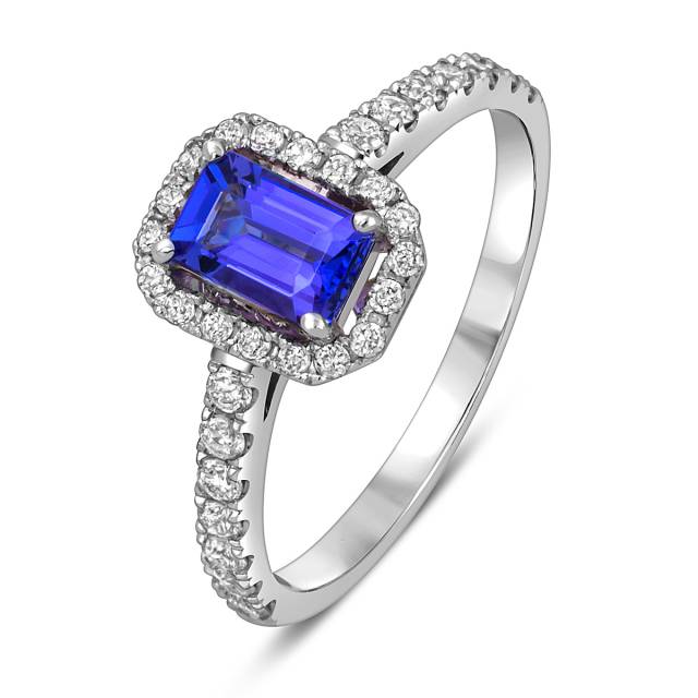 Кольцо из белого золота с бриллиантами и танзанитом (055100)