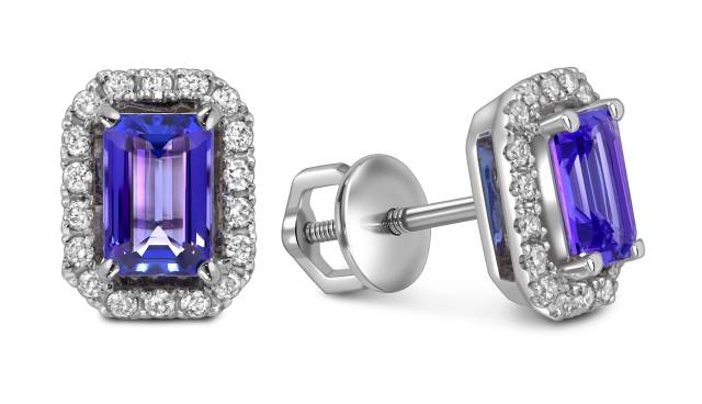 Серьги пусеты из белого золота с бриллиантами и танзанитами (055116)