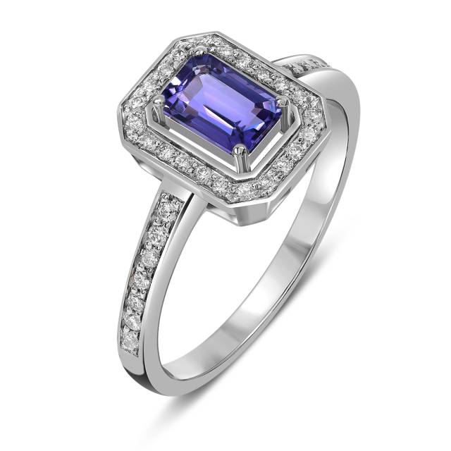 Кольцо из белого золота с бриллиантами и танзанитом (061554)