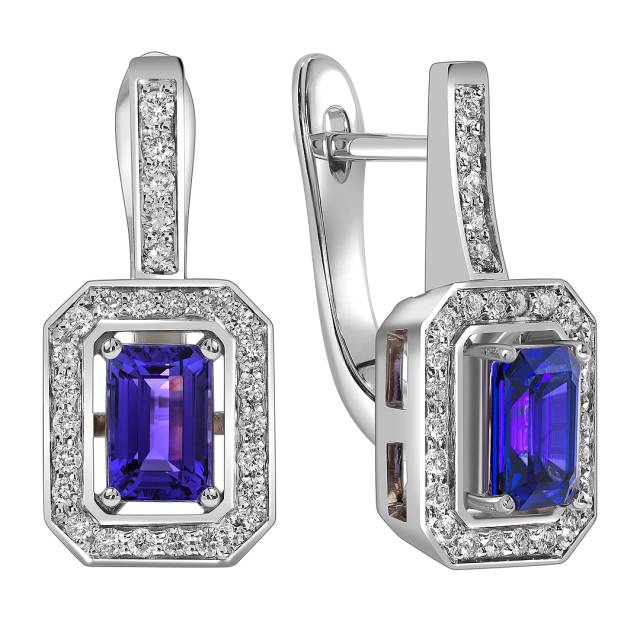 Серьги из белого золота с бриллиантами и танзанитами (061657)